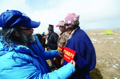 绿色江河志愿者们在湖边支起藏式帐篷,每日破冰取水,捡拾牛粪烧火做饭,在暴风雪、沙尘暴等恶劣天气中,坚持监测斑头雁数量的变化,同时密切关注外来人员对斑头雁的影响。唐古拉山镇闹日巴牧委会的牧民也参与到守护斑头雁的行列中。