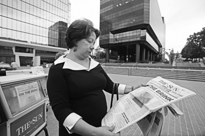 7月12日,在美国加利福尼亚州圣贝纳迪诺市市政厅门前,一名妇女在看报。美国加利福尼亚州圣贝纳迪诺市市议会近日申请破产保护。受近几年楼价暴跌拖累,该市税收下降及劳工成本上升,本年赤字高达近4600万美元,市议会无法应付迫在眉睫的财政困窘,最终寻求破产保护。人口约21万的圣贝纳迪诺市是美国加州两周内第三个申请破产的城市,此前美国加利福尼亚州斯托克顿市于6月28日申请破产保护,猛犸湖市于7月3日申请破产保护。 新华社发