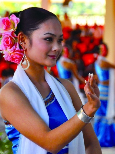 西双版纳傣族自治州聚居着13个少数民族,而傣族是其中人口最多的。我作为一名摄影爱好者,经常拿着相机和笔深入村寨,拍摄傣族生活的图片,亲身感受了傣家人的热情好客。每次有外人到访,傣族男女老少都身穿盛装、载歌载舞,为宾客们送上至诚至真的祝福。