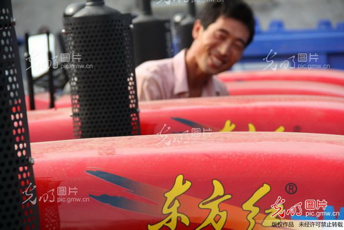 2012年8月11日,在河南省内黄县一农机市场,前来选购国家补贴拖拉机的农民络绎不绝。立秋过后,河南省内黄县一些农机市场提前做好农机具的储备,为农民选购农机秋收生产做准备。刘肖坤摄/光明图片