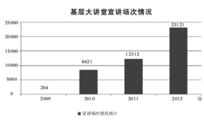 为改变基层理论宣传缺乏合力的状况,自治区党委宣传部、组织部和财政厅等20个单位联合下发了《关于进一步加强基层大讲堂建设的意见》,从政策上解决了基层大讲堂建设的机制问题。在具体组织上,自治区实施了“一体多翼”的讲堂发展计划,联合有关部门开办了面向基层干部群众的“北疆讲坛”“社科讲堂““博苑讲堂”“空中讲堂”“网络讲堂”“院士大讲堂”等专题讲堂,并在各大媒体开辟了基层大讲堂建设专栏。同时,还连续编写了基层大讲堂建设丛书和宣讲辅导材料,为基层兴办讲堂提供了有力的指导。各盟市、旗县、乡镇苏木街道也统一下发文件,将基层现有的党建资源、文化资源、科普资源、网络资源、人才资源整合起来,开办了丰富多彩的特色讲堂,形成了以基层大讲堂为综合载体,党委领导、宣传部主抓、各部门配合、各种社会力量积极参与、基层党组织具体落实的齐抓共建的格局。
