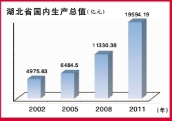 据统计,2011年,湖北国内生产总值达1.96万亿元,同比增长13.8%,增速居全国第七,中部第一,跨入全国第一方阵。