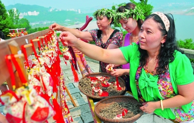 在屈原故乡宜昌秭归县,居民用艾叶、花椒和丁香等制作香囊。