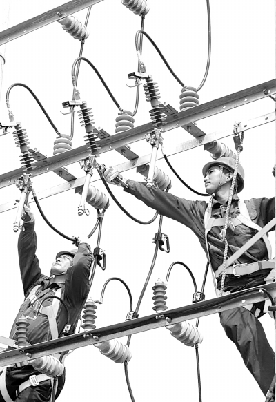 秋收时节,河北献县电力局加快农网改造升级进度,加大线路设备巡查力度,确保群众用上放心电。图为该局工作人员在辖区内维护电力设施。本报记者 赵洪波摄
