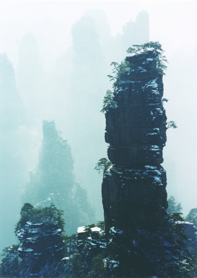 尽管到每一个地方都很有随机性,但回想起来,我还算运气不错。比如有次到湖南张家界,上山时正遇大雪纷飞,能见度不好,我以为当天的计划泡汤了,待到了半山腰却云开雾散、雪后初晴,终于让我捕捉到了黄狮寨那如诗如画的真容,这让我兴奋不已,当即赋诗一首:“南国张家界,峰林昨夜雪,柱立天地间,幻境世间绝。”又如,我到长白山天池,据说到此的人不少,因天气影响能见到天池真面目的却不多,我却极有缘分,恰逢一个晴朗天气,让我这个第一次到天池的人就拍摄到了它的美丽与湛蓝。