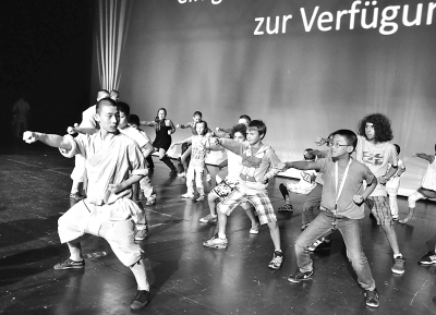 中场休息时,有数十名青少年走上舞台,要少林武僧教他们“功夫”。一位奥地利青年表示,他早就看过少林功夫的电影,但今天能直面少林功夫的神奇,仍使他非常兴奋。有机会,他一定要去少林寺学功夫。