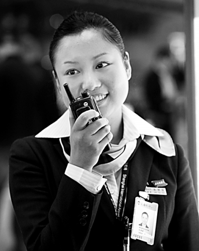 在浦东机场候机楼内,现场问讯“翔音组”常常被旅客和工作人员称作“候机楼第一岗”——不仅因为她是旅客进入候机楼出发大厅后最先遇到的一个服务岗位,更因为“翔音”姑娘们耐心的服务、娴熟的技能、亮丽的形象、亲切的微笑,给来往旅客留下了深刻的印象。80后的朱慧慧便是“翔音组”的一员。