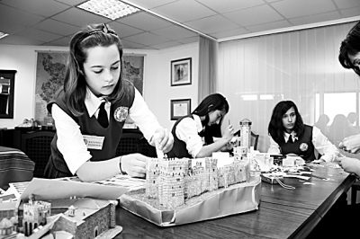10月26日,在保加利亚首都索非亚人民文化宫,保加利亚佩尔尼克市的中学生在制作保加利亚文化遗产建筑模型。当日,保加利亚奇迹展在索非亚人民文化宫开幕,亚历山大·涅夫斯基大教堂、里拉修道院、瓦尔纳古堡垒等保加利亚著名文化遗产的仿真模型在奇迹展上亮相。 新华社发