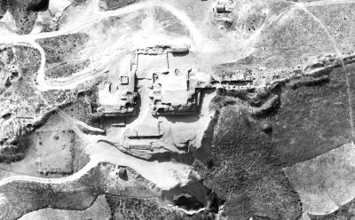 石峁城址外城东门位于外城东北部,门道为东北向,由“外瓮城”、两座包石夯土墩台、曲尺形“内瓮城”、“门塾”等部分组成,这些设施以宽约9米的“『”形门道连接,总面积约2500余平方米。从地势上来看,外城东门址位于遗址区域内最高处,地势开阔,位置险要。