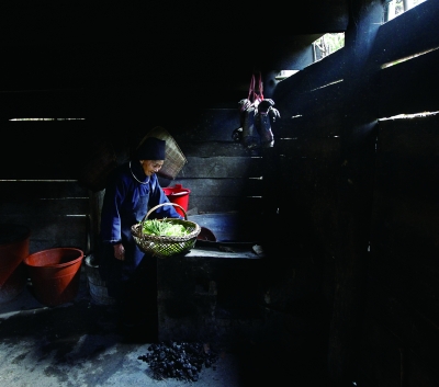 初冬时节,贵州丹寨县扬颂村。刚到这里我就被古朴漂亮的苗族建筑吸引,走进一家去拜访。主人很热情,领着我在二楼参观客厅和卧室,当参观完毕下楼梯时,我看到一楼厨房里太阳光通过木板缝隙照射进来形成了许多束美丽的光线。我进到厨房拍了几张静物照片,突然从厨房另一侧门里走进一位苗族老人,来到灶台前准备午饭。我屏住呼吸,生怕惊扰了她,赶紧抓拍下这难得的瞬间。