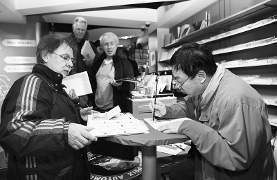 1月4日,旅法华裔艺术家李中耀在法国巴黎一家邮局为排队购买中国蛇年生肖纪念邮票的人们签名。为迎接中国农历新年的到来,法国邮政总局当日在巴黎发售中国蛇年生肖纪念邮票。2005年,法国邮政总局首次发行了由旅法华裔艺术家李中耀与法国艺术家合作完成的中国农历鸡年生肖纪念邮票,此后又陆续发行了狗年、猪年、鼠年、牛年、虎年、兔年、龙年生肖纪念邮票,吸引了大批集邮爱好者踊跃购买。 新华社发