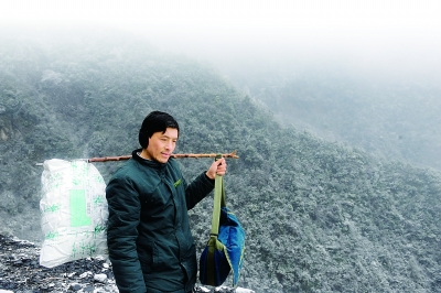 12月,鄂西,银装素裹,山高路险,张美冲早早地挎上沉重的邮包踏着积雪出发了,寂静的山路上与他为伴的还有他的“老伙伴”——拐杖。它早已成为张美冲驱蛇、赶狗、登山、涉水的一大法宝,村民们也因此亲切地称张美冲为“拐杖哥”。