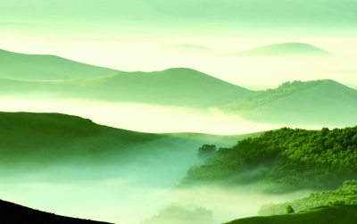 秋雨缠绵,云雾嬉峰峦。起伏群山翠叠烟,谷幽依稀境仙。