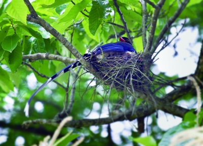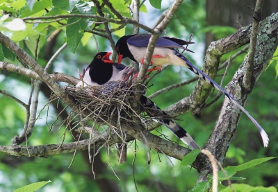 凭经验,我很快在邻近的一棵栗树上发现了红嘴蓝鹊的爱巢。在其后的三周时间里,我来此蹲守十余次,用镜头记录下了它们从相识、相爱直到离散的感伤故事,深切地感受了它们的爱与情、乐与忧、喜与悲、生与死。