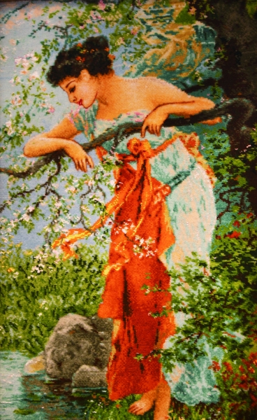 鲜艳的花朵、恬静的乡村姑娘、静谧的田野村庄,这些地毯上编织出的活灵活现的图案,仿佛把人带入一条幽静的小道,沿途欣赏古老的波斯艺术。波斯地毯是伊朗著名的手工业之一,以优良的质地、古朴雅致的图案和精美的工艺受到世人的喜爱。地毯手工编织,多以自然界的风景、花卉、动物,以及阿拉伯文字和几何图案进行构图。
