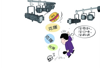 重庆师范大学传媒学院赖黎捷教授指出,电视娱乐节目一味的感性狂欢,带来了疯狂的“复制”和“拼贴”,导致电视节目“同质化”加剧,“创新性”匮乏,竞争力弱化。用刘正举的话说,“电视娱乐节目来得急,上得多,死得快”。
