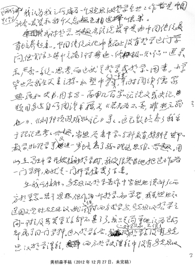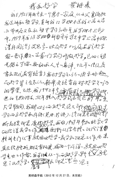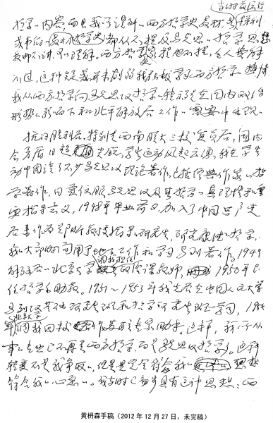 1月24日晚上,黄枬森92年的生命历程画上句号。黄枬森的小女儿黄萱介绍,黄先生是去年12月28日住进医院的,这次住院的一个直接原因是赶写一篇总结自己学术生涯的文章《我和哲学》。因劳累发病,没想到,4页手稿成了他的绝笔。