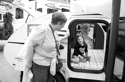 2月6日,在美国纽约休斯敦房车展上,一名小女孩钻进一辆名为“小家伙”的轻便型旅行拖车内体验。该车也是本届房车展上体积最小的一辆,重量仅900磅(约810斤)。当天,第49届休斯敦房车展在休斯敦市瑞拉特中心拉开帷幕,共展出约500款各类房车车型。此次展出的房车从旅行拖车、帐篷露营车到豪华家居旅行车,种类繁多。为期五天的车展将于10日落幕,预计将吸引3万至3.5万人前来观展。 新华社发