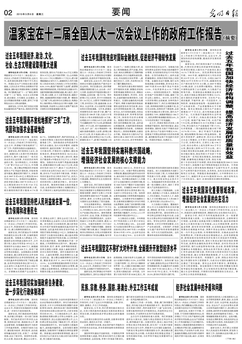 - 温家宝在十二届全国人大一次会议上作的政府工作报告(摘要)