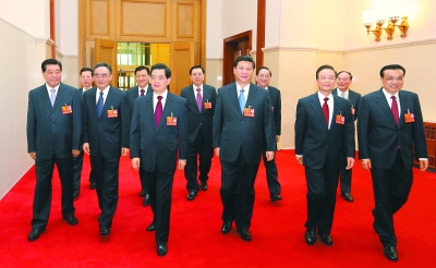 胡锦涛、习近平、吴邦国、温家宝、贾庆林、李克强、俞正声、王岐山、张高丽等和大会主席团成员在主席台就座。