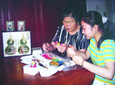 郎志丽(左)向年轻人传授面人技艺