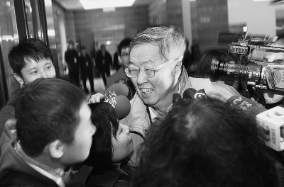 3月6日,全国政协委员、中国人民银行行长周小川在委员驻地宾馆参加分组讨论前,被众多中外媒体记者围住。