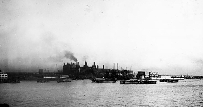 生活用煤的影响还在其次,近代以来,对大气污染影响最大的还是工业燃料释放的有害气体和烟尘。近代工业化较早的城市对煤炭的需求相当大。如近代上海为全国工商业中心,工厂机器的发动,交通工具的推进,均以煤炭是赖,数百万人口,日常赖以举火为炊者,亦以煤炭为主。当时上海成为全国最大销煤区域,1935年有人统计全国每年用煤约2500万吨,上海每年销煤为300万吨,占总额七分之一强(汪警石:《近年来上海煤炭之概况》,《工商半月刊》,1935年第7卷第11号)。