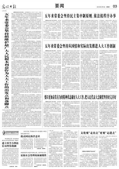 五年来常委会坚持从国情和实际出发推进人大工作创新