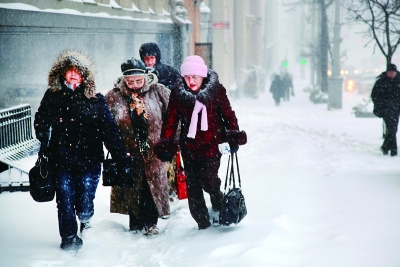 3月15日,在白俄罗斯首都明斯克,行人冒雪前行。据当地气象部门发布的消息,暴风雪15日席卷了白俄罗斯大部分地区,一些地区最大风速达24米/秒,能见度降至200米。因积雪和恶劣天气,首都明斯克机场临时关闭,市内道路交通出现严重拥堵,部分地铁站采取限行措施。 新华社发