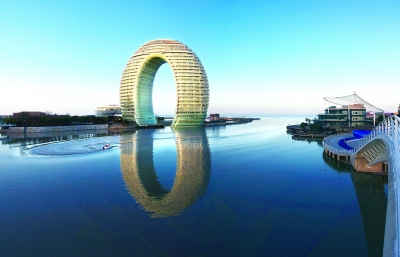 太湖依然平静,而湖边的月亮酒店入夜的灯光却变幻迷人。我们可以感觉到,一座现代化的、生态型的城市正在太湖之滨发展、延伸。(胡 煊/撰文)(本版图片由湖州市委外宣办提供)