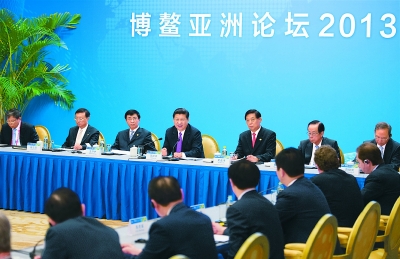 习近平同出席博鳌亚洲论坛2013年年会的中外企业家代表座谈时强调