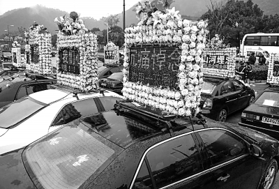 乐清市虹桥镇居民陈先生说:“送葬一般会租十几辆车,费用要一万多元,送葬的电子花圈车队好比结婚时的婚车,大家都要面子,就怕比别人排场小,电子花圈车队也就越来越长了。”