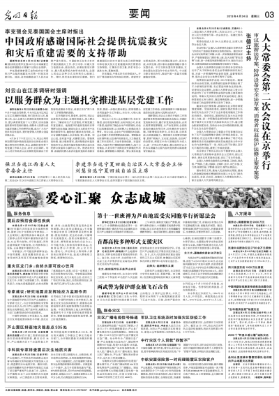 中国政府感谢国际社会提供抗震救灾和灾后重建需要的支持帮助