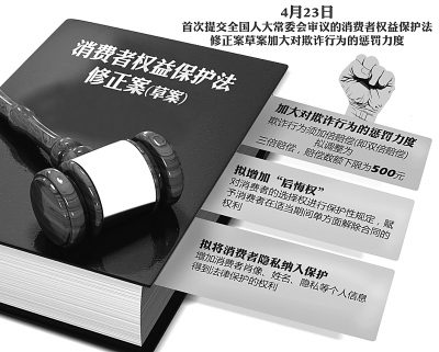 今天首次提交全国人大常委会审议的消费者权益保护法修正案草案回应了公众的期盼,多达40多处的条文修改,细化了消费者权益的规定,强化了经营者义务与责任。