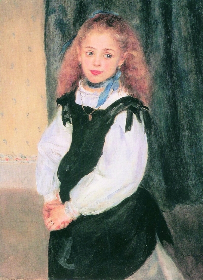 此为1876年第二届印象派画展中展出的作品,模特是在巴黎展览会场杜朗·里埃尔画廊工作的鲁格朗的女儿。画家创作这幅作品时34岁,将那极富少女梦幻和希望如大人般的表情,用柔和的笔触捕捉了下来。