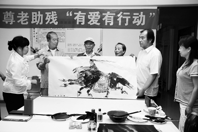 5月19日是全国助残日,在北京三乐康复老年公寓,画家关麟英、吉文旭等挥毫泼墨,为康复老人送上心灵慰藉。本报记者 程伟光摄