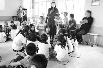 日前,山东潍坊市委宣传部、潍坊市教育局等单位在临朐县宋王庄小学联合主办了一场名为“共享爱的阳光托起明天希望”的公益活动。图为一位教师正在和留守儿童们做游戏。 王磊摄/光明图片