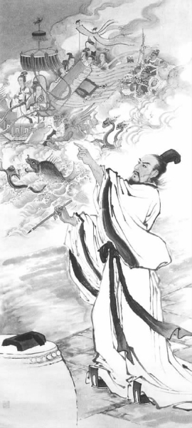 注:被放逐之后,徘徊楚地山泽,见楚先王及公卿庙宇墙壁画有天地山川神灵图绘,于是呵而问之,抒发内心忧愤。