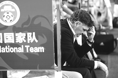 6月15日,面对中国男足的这场惨败,主教练卡马乔低头沉思。CFP
