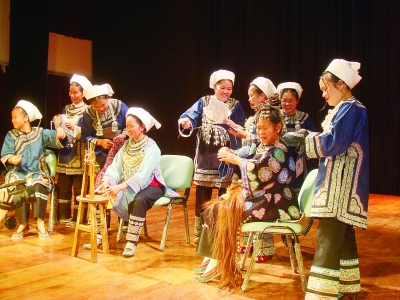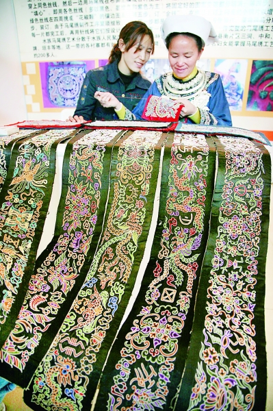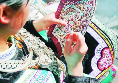 | 图为水族妇女正在展示和表演“马尾绣”刺绣工艺。(图片由贵州省非遗中心提供,陆勇昌撰文) |