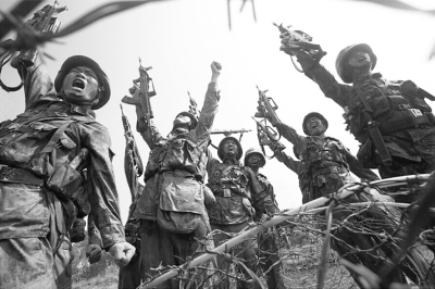 广州军区某特战旅近来在训练中专攻精训,练就能打胜仗的过硬本领。图为官兵们在实战训练后为胜利欢呼。 李三红摄