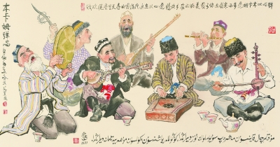 好在新疆中国画家们有了更深的创新,一大批少数民族画家加入其中,用他们自己熟悉的生活笔墨,创作新疆的中国画。因为中国画原本就是各民族画家共同创造出来的艺术样式,是名副其实的全中国各民族共同所有的画种。