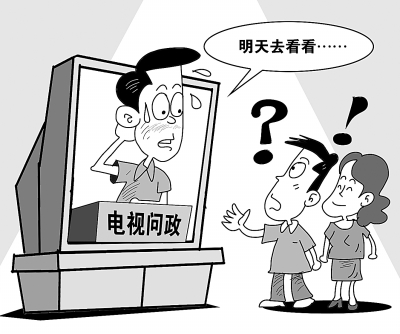 今年,“电视问政”的形式进一步拓展,为群众代表、专家代表与问政对象三者之间平等对话提供新的平台。有网友在微博上调侃,官员回答百姓提问时有“套路”:先承认“确实存在问题”,然后说“反映的问题正在改进”,最后表示“明天去现场看看”。