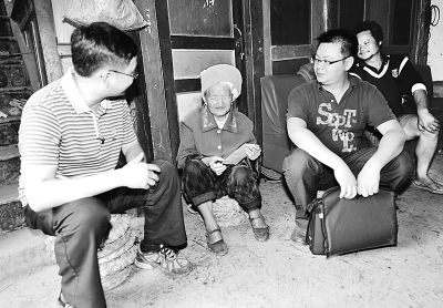 云南玉溪市委组织部的“随机调研”小组在村子里慰问彝族老人柏莲英(右)。新华社发