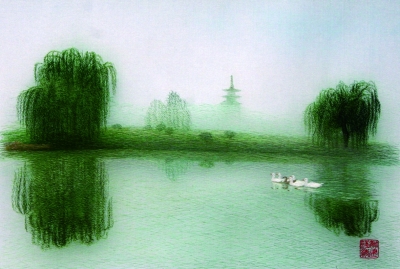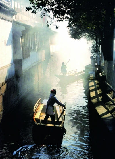 经过了那些年的风起云涌,太湖却依然波澜不兴,缓缓地流淌出千年的吴地文明。而所谓的吴文化,说穿了一个字:“作”。你说那樱桃小口也能含住的橄榄核,吴人雕呀刻呀愣是开出一条五脏俱全的小船来,让全国的孩子们都抓耳挠腮地背诵《核舟记》;你看那影影绰绰的苏绣,把一根丝线劈成二十四股,绣娘们坐在家门口把眼睛贴在绣布上,绣出来的大白猫每一根毛都光亮水滑;你摸那门楼上的砖雕,小小的砖头上一刀一斧的竟然是整部《三国演义》;你坐下来品尝洞庭碧螺春,看着卷如螺的叶子在八十度的水里旋转着舒展,慢慢蒸腾起的是其独有的花果香气。那声声慢慢的评弹,大珠小珠落玉盘,咿咿呀呀唱半天才告诉你一曲范蠡西施泛舟太湖的故事;那寻常的水乡妇女,早晨到河边洗个菜都要将襟褂层层扣好,踩着自己绣的碎花小布鞋,手腕上的栀子花一路幽香。
