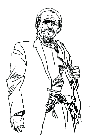 香料仍然是这里的特色商品,走进街边的一家商铺,店主热情地向我展示他这里的特色——乳香,这曾是丝绸之路上令阿拉伯半岛富裕繁荣的热销商品之一。琥珀色的乳香点燃后释放出甘甜宜人的香味,据说这种香味有净化身心的力量。寻着烤肉的香味,来到街边一家小餐馆,要上两串烤羊肉,一份阿拉伯薄饼和汤,一边品尝美味佳肴,一边观望着街边往来的行人。街上,成年男子们尊崇传统,身着白色长袍,头缠围巾,在腰带间配饰着一种名为“疆匕牙”的刀,刀形为夸张的弯钩形,刀靽、腰带上都有华丽的装饰,不同的装饰显示着不同的地位。传说疆匕牙刀是古代示巴王国时期士兵的武器,今天已演变为也门男人灵魂的象征。成年女性除了眼睛和手,其他部位全部被黑色长袍覆盖,她们怀抱或牵着的孩子都异常美丽可爱。