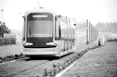 8月15日,从桃仙机场首发的有轨电车在行驶中。当日,由中国北车承建的我国首个现代有轨电车网——沈阳浑南新区现代有轨电车网开始载客试运营,并将于9月15日正式运营,在此期间市民将可以免费乘坐。新华社记者 潘昱龙摄