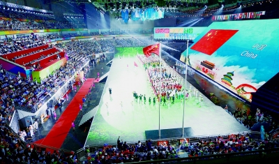 这场别开生面的开幕式,打破了以往传统体育盛会的惯例。演职人员1100多人,不到同规格运动会人数的十分之一;观众6000人左右,不到同规格运动会开幕式观众人数的四分之一,是国内举办的国际综合性体育赛事中规模最小的一次;开幕式总预算不足3000万元,不到同规格体育赛事的十分之一。