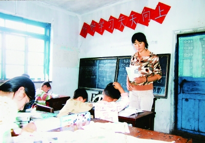 我所在的兰河小学地处偏远山区,办学条件特别简陋。说是学校,其实就是一间不足20平方米的小屋,里面有4张学生桌,8把破椅子和一张老式办公桌;一块黑板用粉笔划分了四块,用于四个年级的教学。凭借多年的教学经验,我总结出了“动静教学法”,即一个年级的学生动起来听讲课,另三个年级的学生静下来写作业。