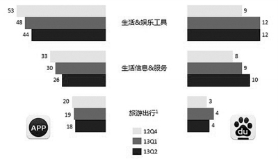 报告指出,在生活工具、娱乐工具、生活信息、旅游出行等多类典型的低频应用中,用户的需求行为已经从本地应用转向移动搜索,如此就使得移动应用领域出现了日益严重的“寡头”现象。如何帮助每一个开发者找到目标用户,让每个用户可以便捷地使用应用,成为移动互联网亟需解决的一道难题。